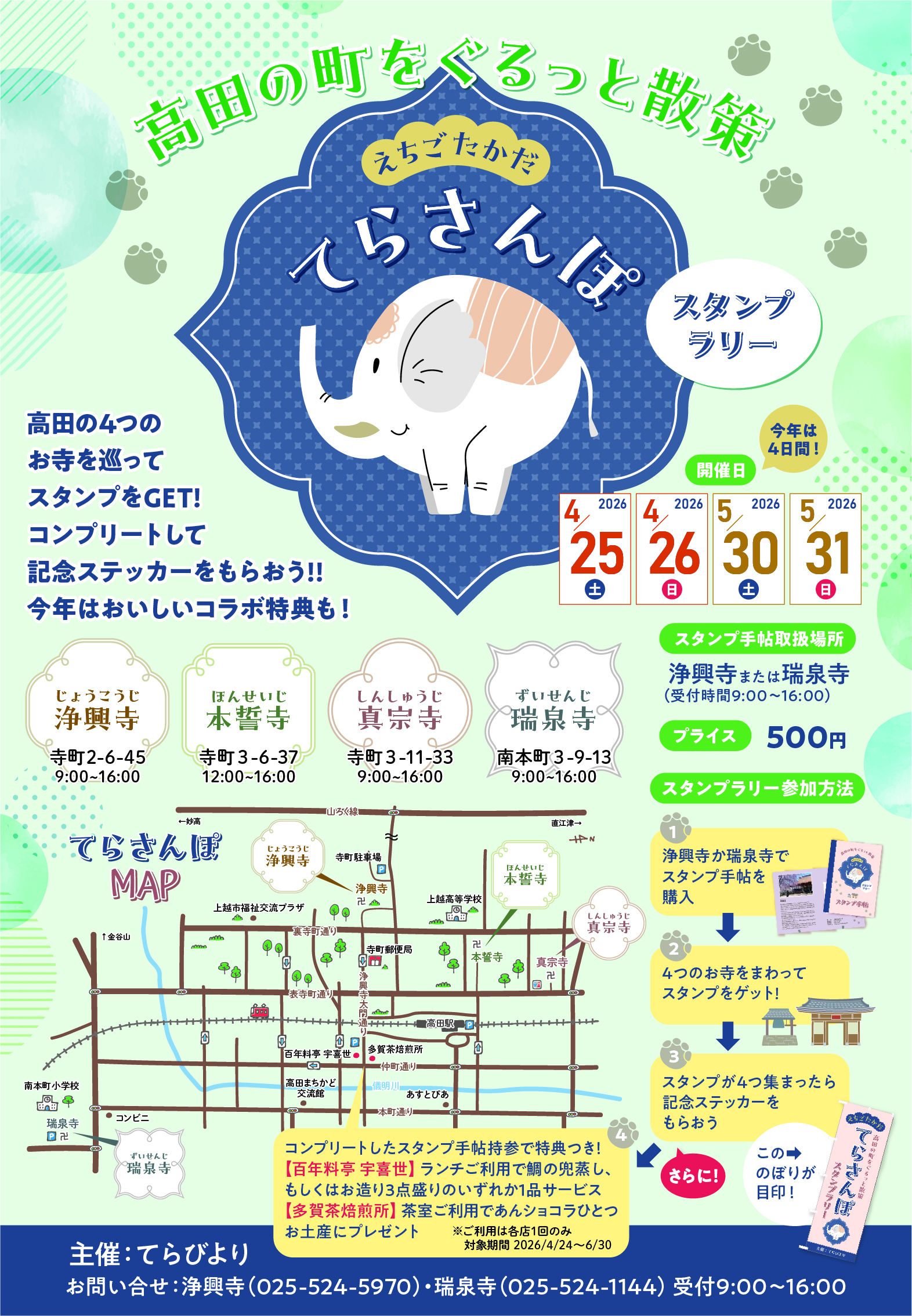 【4/25-26&5/30-31】高田の4つのお寺をめぐるスタンプラリー「てらさんぽ」のご案内