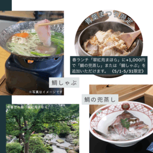 【5月限定】鯛づくしオプション付き「春の翠紅苑まほら」ランチ│日枝神社奉賛│青葉まつり